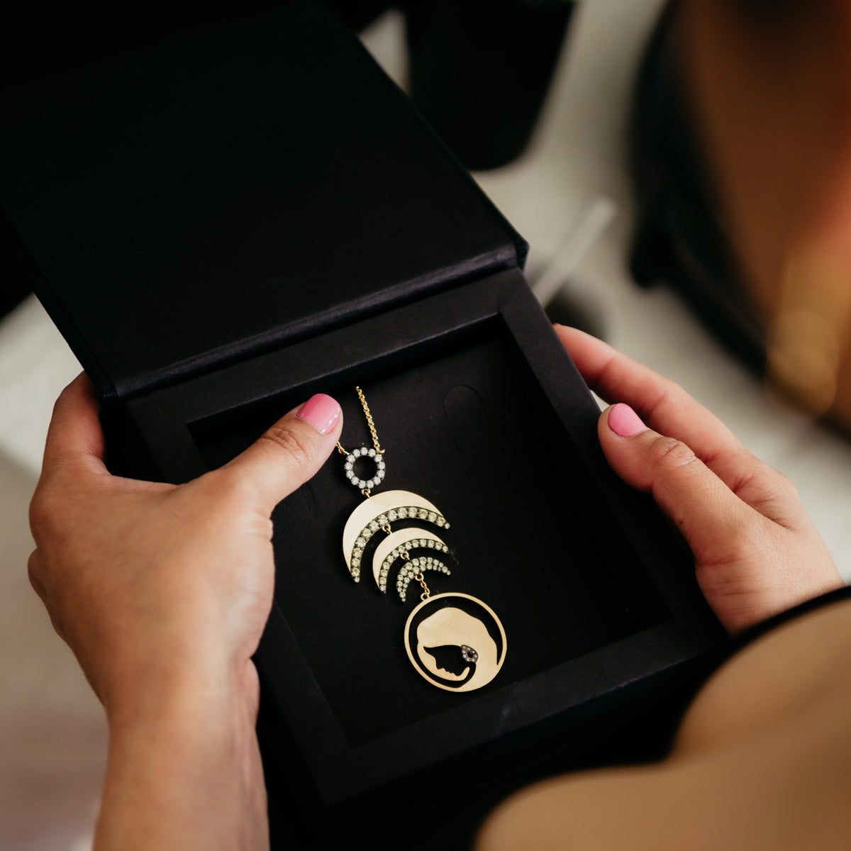 Carved Lady Coin Pendant with Halo Necklace – My Lady Collection Part of the My Lady Collection, this necklace is inspired by a journey of self-discovery, courage, and sisterhood. The...